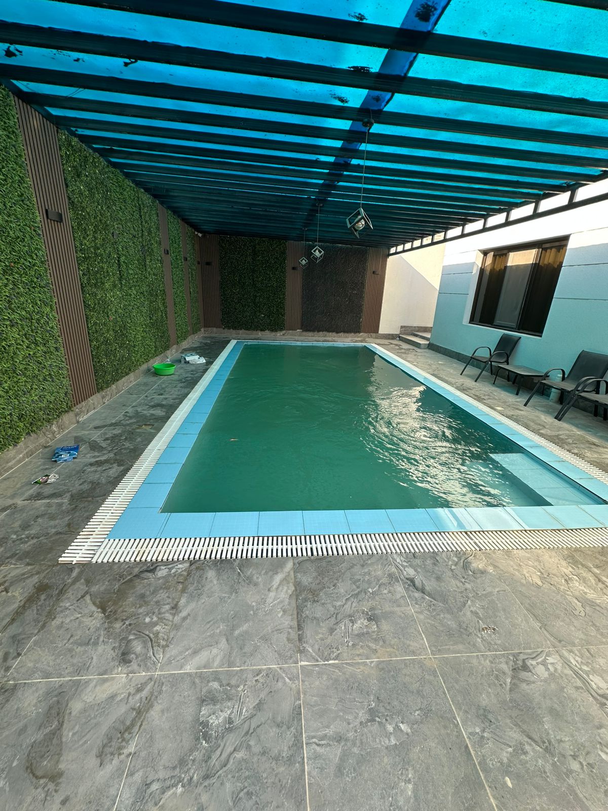 - تنسيق الموقع المحيط: تسوية المنطقة المحيطة بالمسبح، وتركيب الأرصفة أو الديكورات الخارجية (Landscaping).